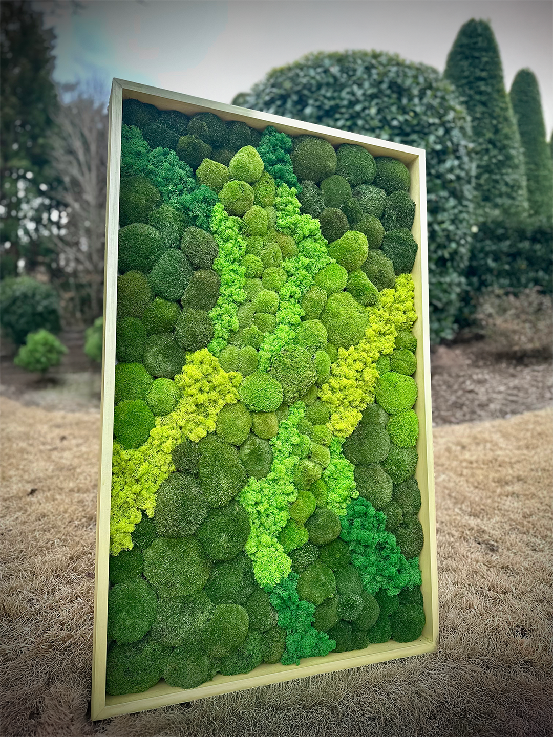 Our answer? A curated series of six custom moss art pieces—preserved, maintenance-free, and uniquely designed to reflect the building’s stature while grounding it in biophilic design principles.